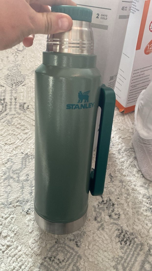 Stanley markalı, parlak yeşil renkte, saplı ve paslanmaz çelik kapaklı termos. İçecekleri sıcak tutar. 1.4 lt bu fiyata kaçmaz