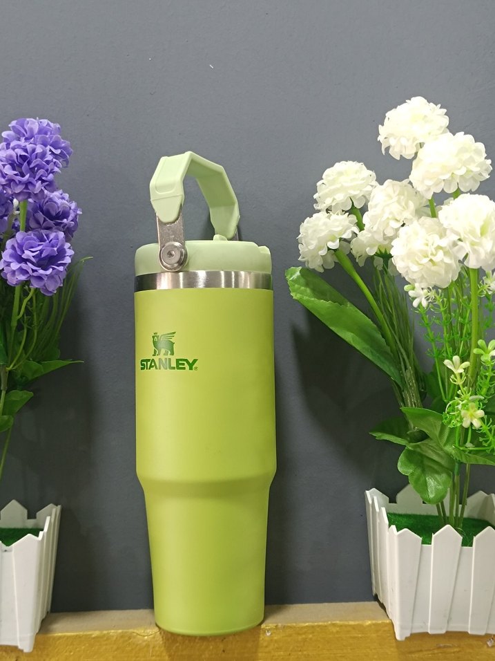 Stanley yeşil renkli çocuk termosu sağlam tasarıma ve kullanışlı tutacağa sahiptir, içecekleri sıcak ya da soğuk tutar.