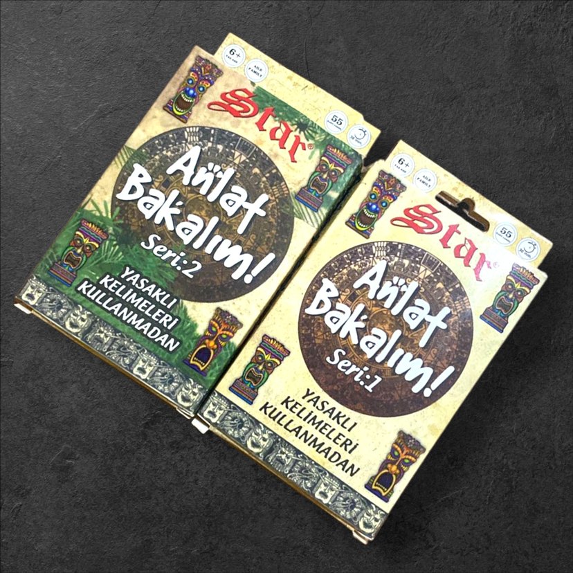 Star Anlat Bakalım! kart oyunu seti, yasaklı kelimeleri kullanmadan anlatma üzerine iki seriden oluşur.