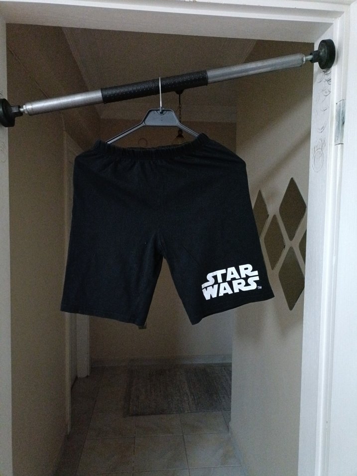 Star Wars baskılı siyah, yumuşak ve sıcak kumaştan yapılmış, elastik bel bantlı erkek şort. Street wear ve rock punk tarzında.