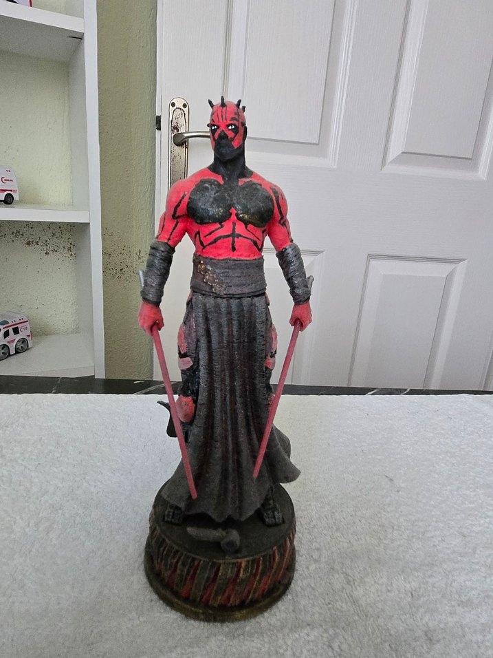 Kırmızı ve siyah renklere sahip bu aksiyon figürü, çift kılıç ve detaylı taban ile tasarlanmıştır. Yuvarlak taban üzerinde durur. ️