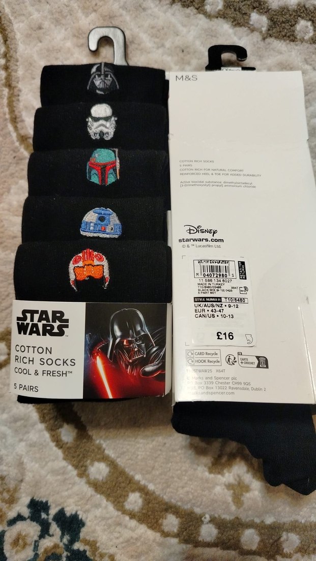 Pamuklu, siyah Star Wars baskılı erkek çocuk çorapları. Cool & Fresh özelliğiyle rahat kullanım sağlar. 43-47 numara, 5 çift paket.