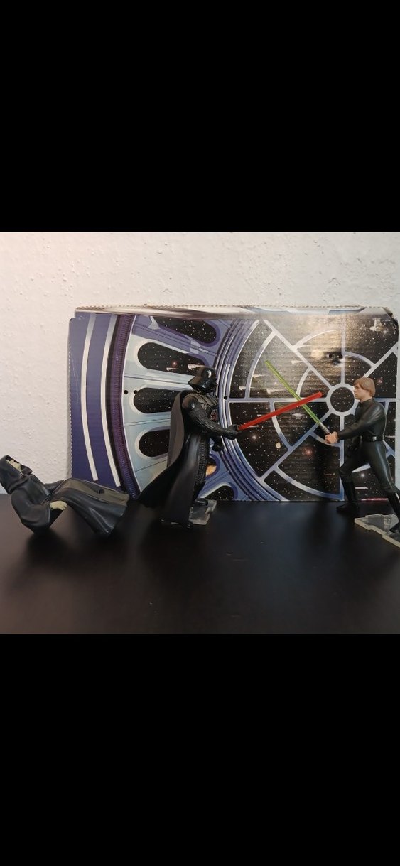 ■Star Wars The Power of The Force Final Jedi Duel Seti◇ ■Karanlık temalı Star Wars aksiyon figürleri, ışın kılıcı düellosu sahnesi ve uzay arka planıyla birlikte. Siyah ve canlı renkler içerir. ⚔️