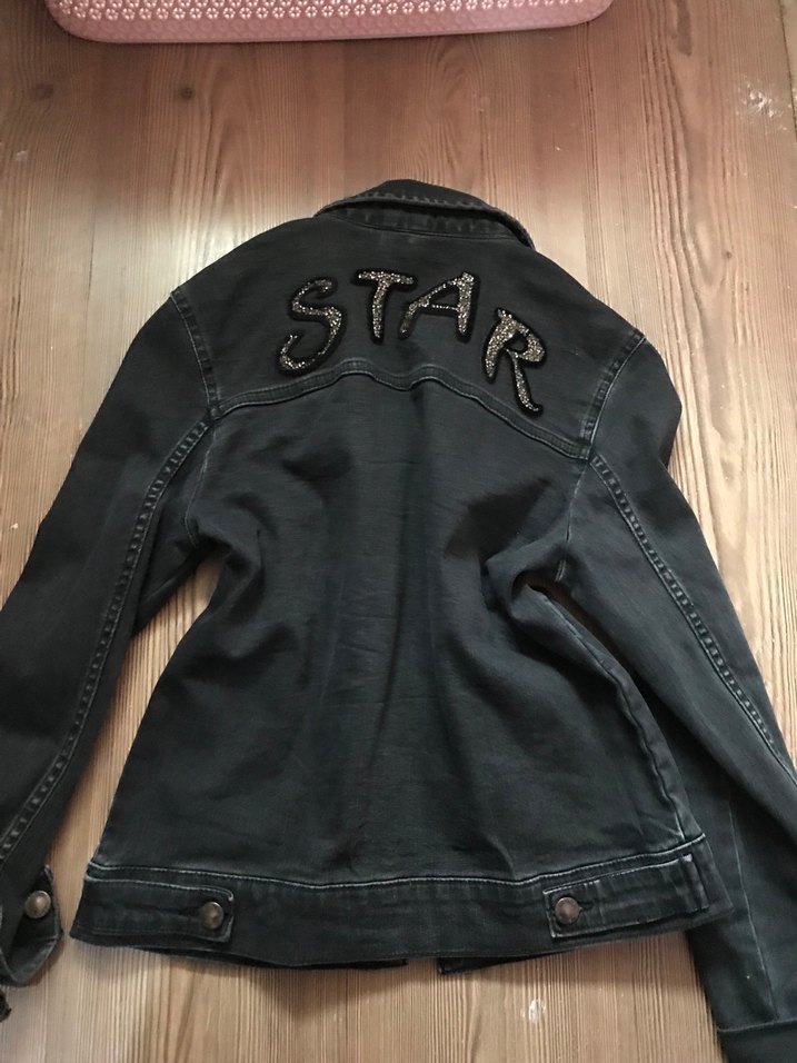 Çok güzel bir ceket star yazılı taşlı kot ceket tarz duruyo