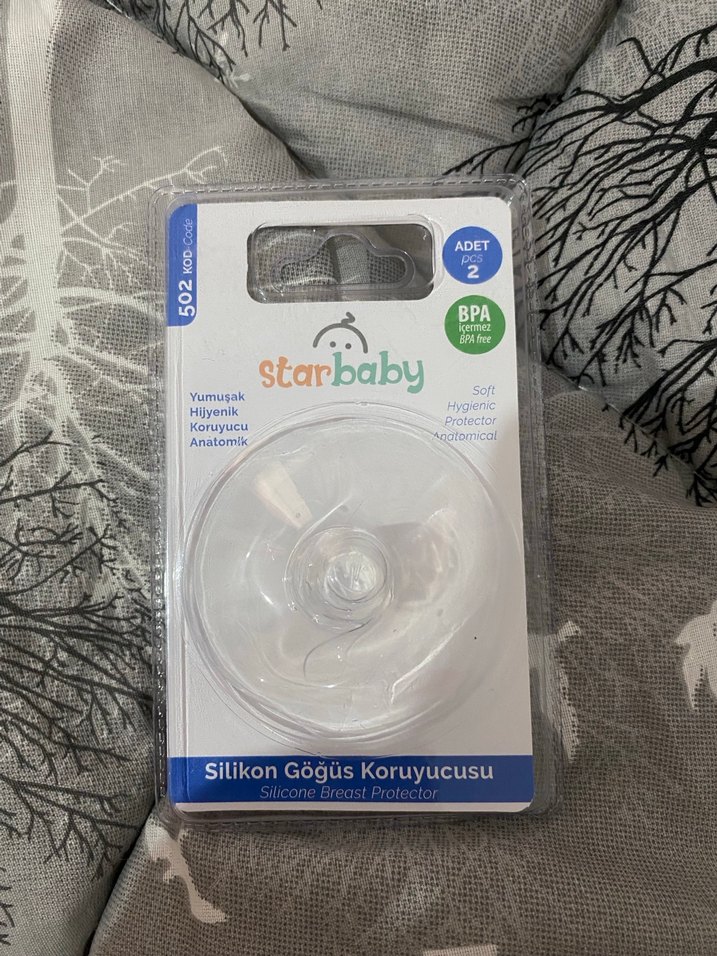 Starbaby markalı silikon göğüs koruyucusu, yumuşak, hijyenik ve anatomik yapıda bpa içermez. Paketli hiç açılmadı