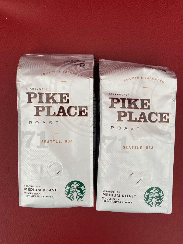 Starbucks Pike Place orta kavrulmuş kahve çekirdekleri, Seattle, ABD menşeli, yumuşak ve dengeli tat sunar. %100 Arabica çekirdek, bej ambalajda. ☕