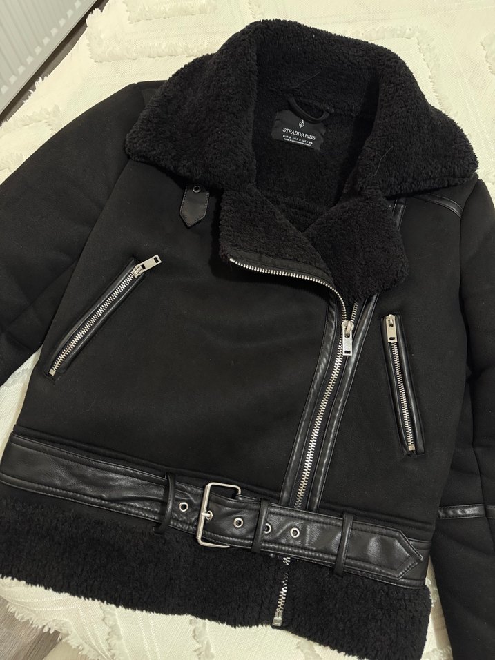 Stardivarius Siyah Süet Kürklü Biker Ceket