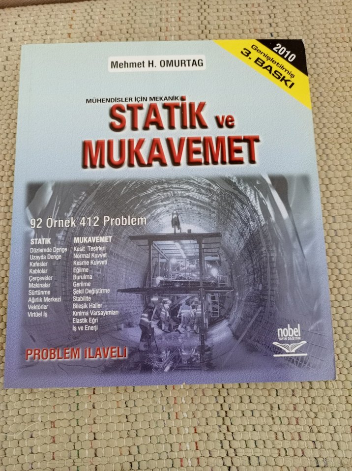 Mehmet H. Omurtağ'ın mühendislik için hazırladığı statik ve mukavemet kitabı, 92 örnek ve 412 problem ile problem ilaveli. Tüm mühendislik bölümleri için kullanılabilecek bir kaynak kitaptır. Konu anlatımlı ve problem çözümlü, çizik, yırtık, deformasyon vs. yok sadece basımı eskidir.