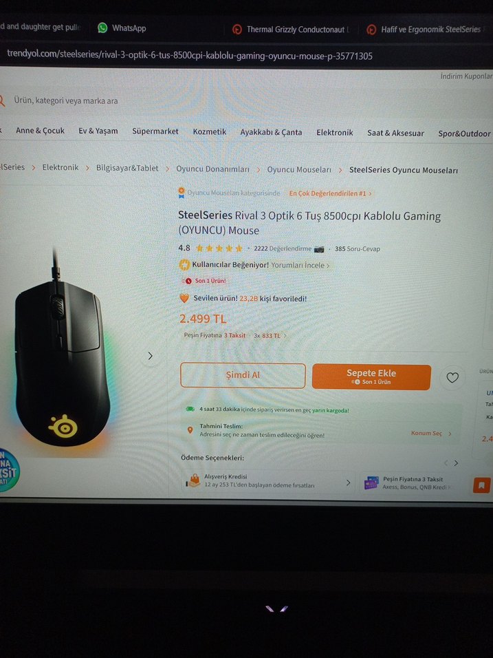SteelSeries Rival 3 Optik 6 Tuş Kablolu Gaming Mouse