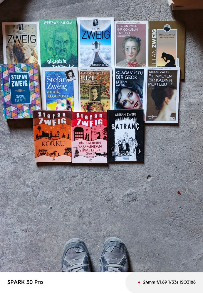 Stefan Zweig'in Satranç, Korku, Bilinmeyen Bir Kadının Mektubu gibi 12 romanından oluşan kitap seti.