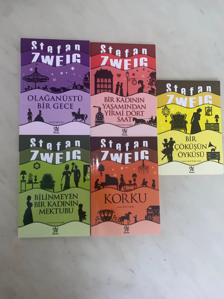 Stefan Zweig'in 'Korku', 'Bilinmeyen Bir Kadının Mektubu' ve 'Bir Kadının Yaşamından Yirmi Dört Saat' gibi 5 kitabından oluşan roman seti.