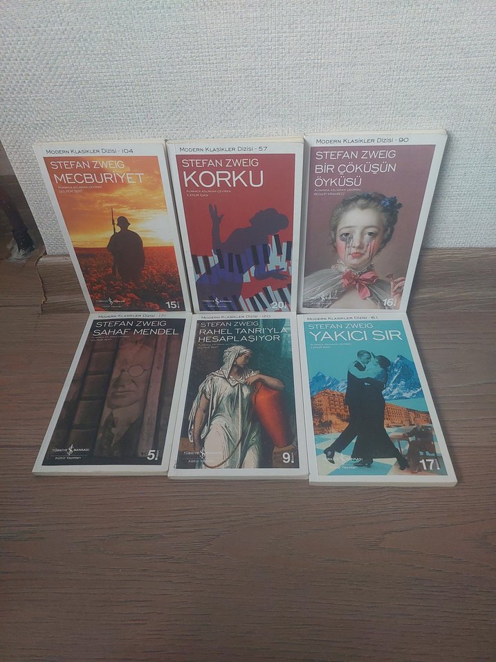 Stefan Zweig'in "Korku," "Mecburiyet," "Şahaf Mendel," "Bir Çöküşün Öyküsü," "Rafael Tanrıyı Hesaplaşıyor" ve "Yakıcı Sır" romanlarından oluşan 6'lı set. İsterseniz teklide satım yapılır