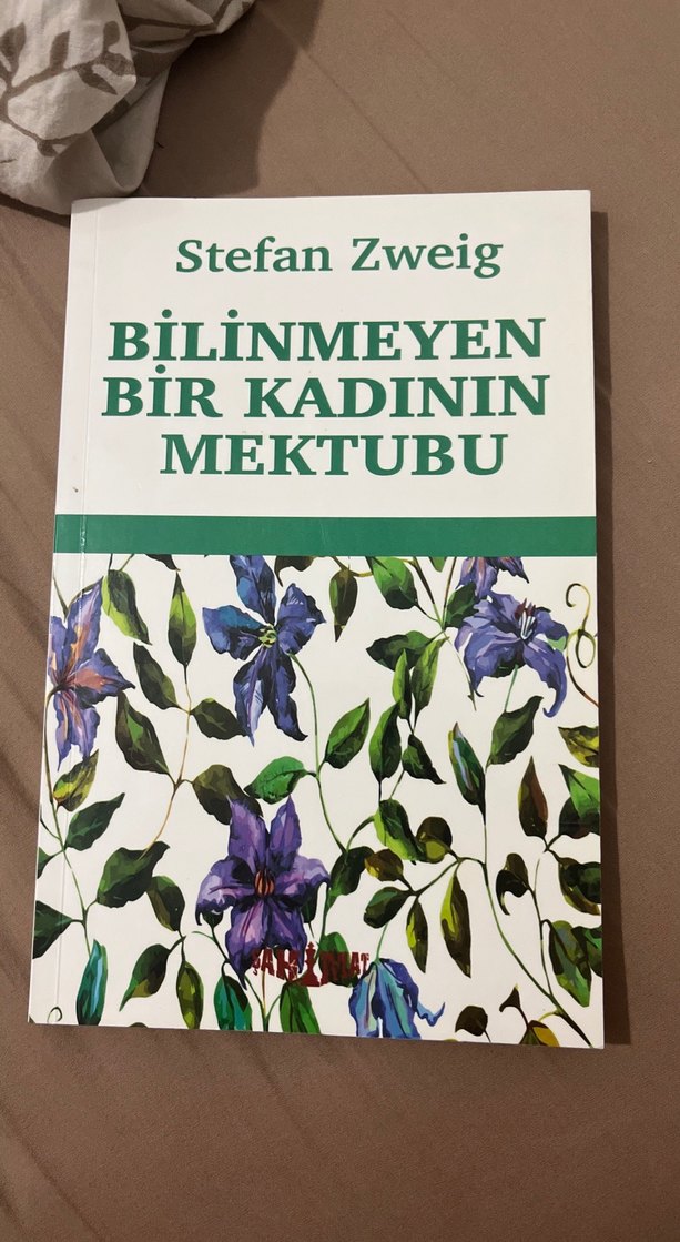 Stefan Zweig'in 'Bilinmeyen Bir Kadının Mektubu' adlı romanı, çiçek desenli kapak tasarımıyla klasik bir edebi eserdir.