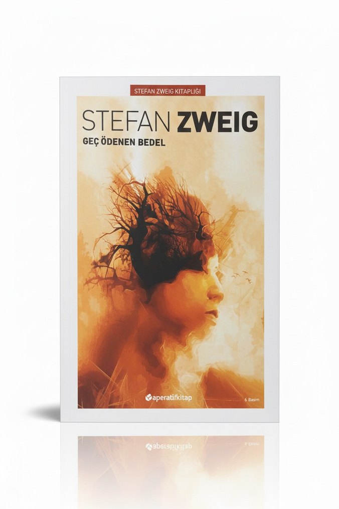 Stefan Zweig'in "Geç Ödenen Bedel" adlı romanı, derin duygusal ve psikolojik temaları işler. Kapakta, ağaç dallarına dönüşen bir kadının sanatsal profili yer alır.