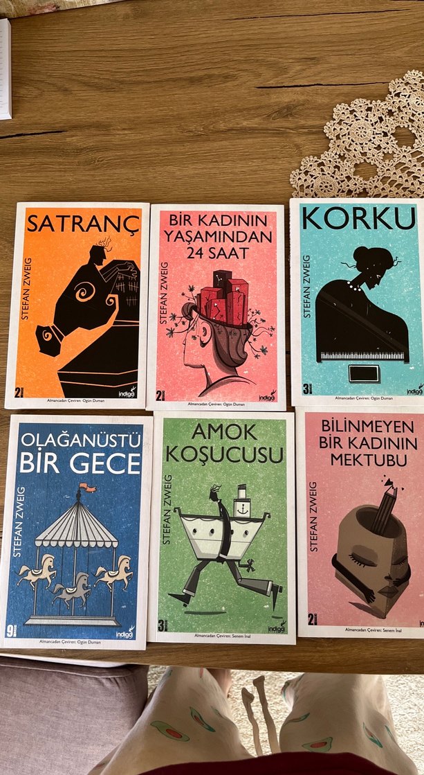 Stefan Zweig'in Satranç, Bir Kadının Yaşamından 24 Saat, Korku, Olağanüstü Bir Gece, Amok ve Bilinmeyen Bir Kadının Mektubu kitaplarından oluşan 6 kitaplık set.