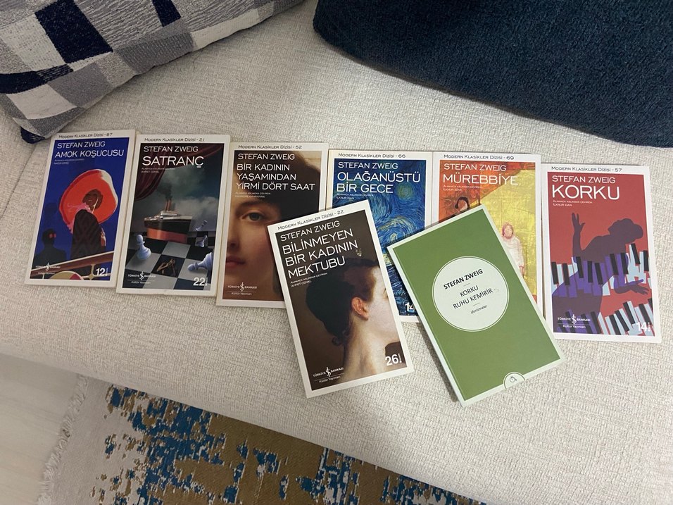 Stefan Zweig'in Satranç, Mürebbiye, Olağanüstü Bir Gece gibi 6 romanından oluşan kitap seti.