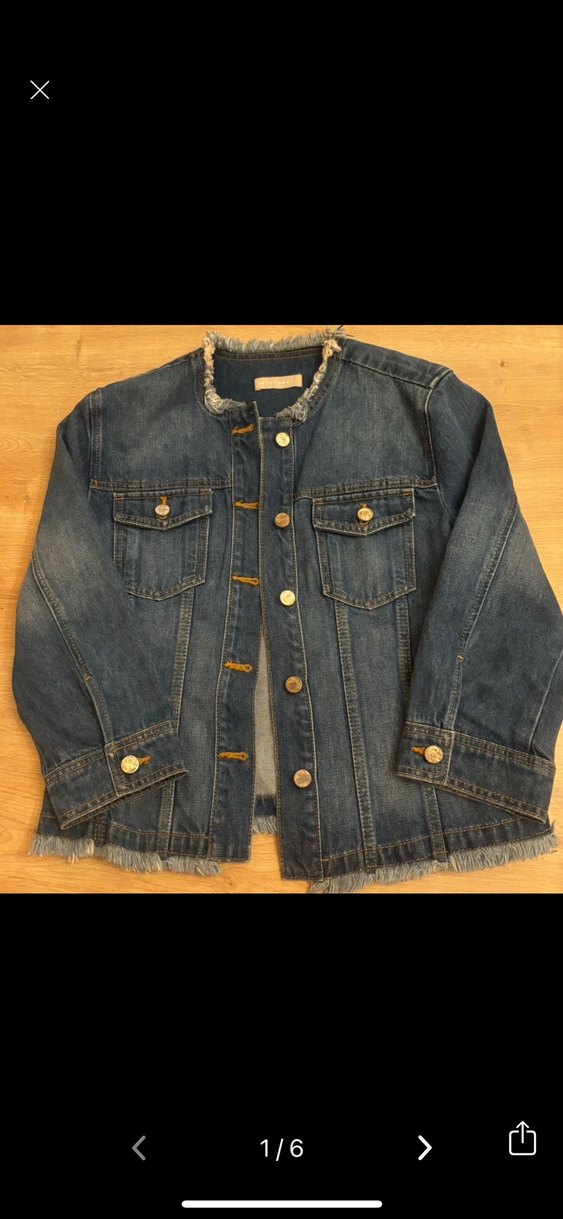 Düğmeli, yaka kısmı kesik, uzun kollu, bol kesim mavi denim ceket. Kenarlarında salaş detaylar bulunur. Günlük rahat kullanıma uygundur. Az kullanıldı, sorunsuz, biraz düğmelerinde kararma var fotolarda bellidir. Beden olarak biraz küçük 40 denmiş ancak 38 için daha uygun geniş bir 36 bile olabilir.