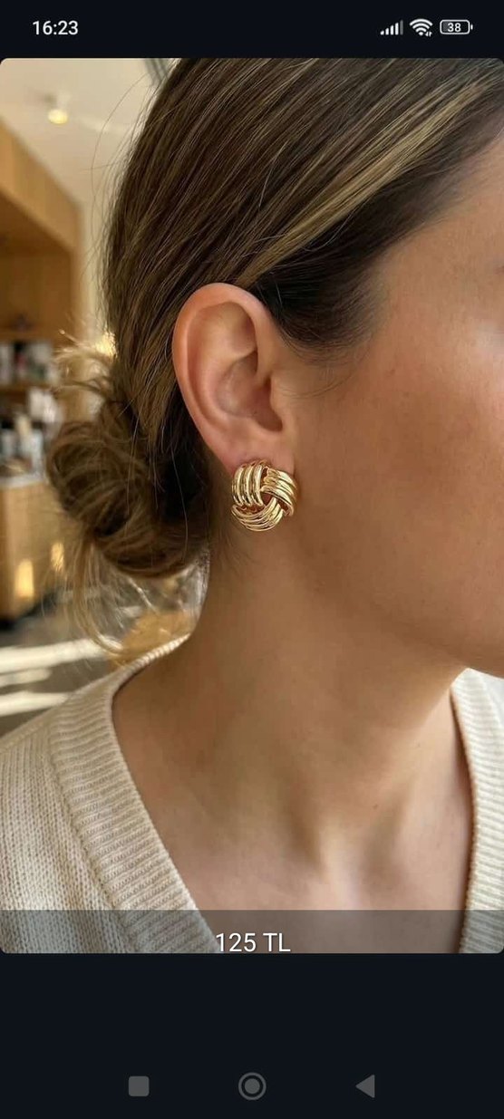 Altın renkli, parlak yüzeyli pilili midi küpeler, bohem Paris tarzından esinlenmiştir ve günlük kullanıma uygundur.
