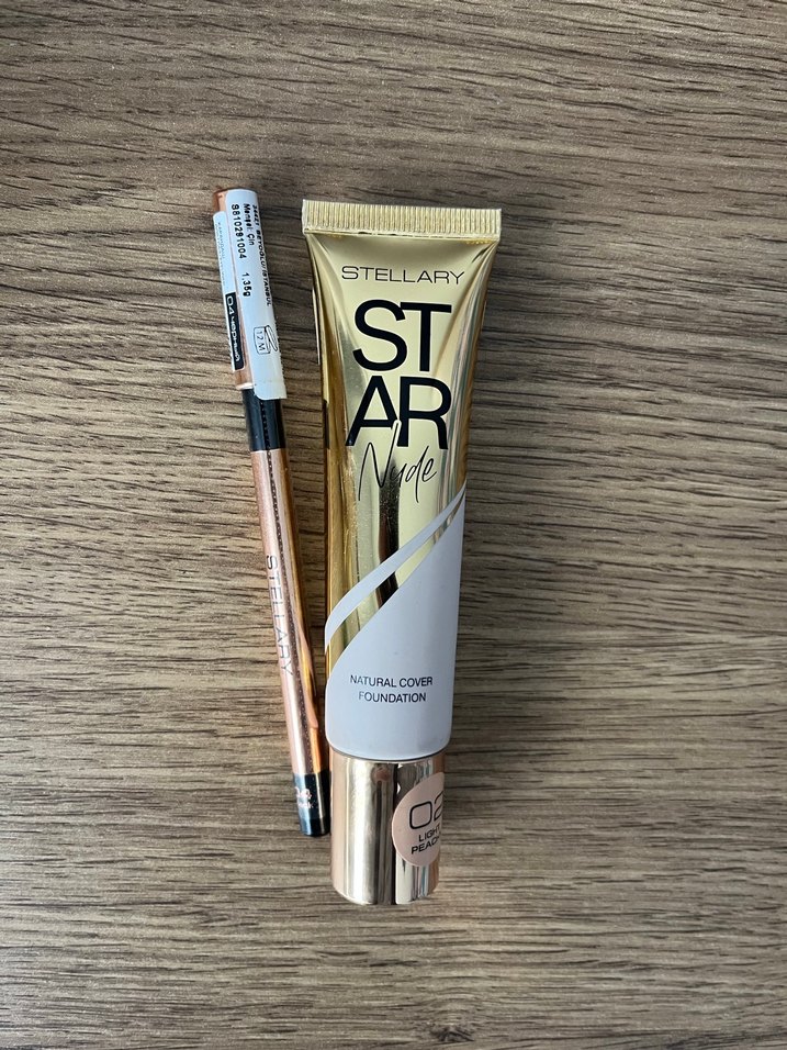 Stellary Star Nude parlak bej renginde, doğal kapatıcılık sağlayan fondötendir.02 light peachy rengidir sadece 1 kez denendis sıfır ürün hiç kullanılmadı göz kalemi 04 black siyah rengidir hiç açılmadı etiketli ürün ikili fiyattır