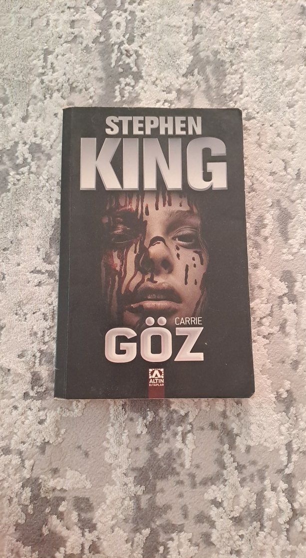 Stephen King'in "Göz" (Carrie) romanı, kan izleriyle kaplı bir yüzün yer aldığı karanlık ve etkileyici kapağa sahip.