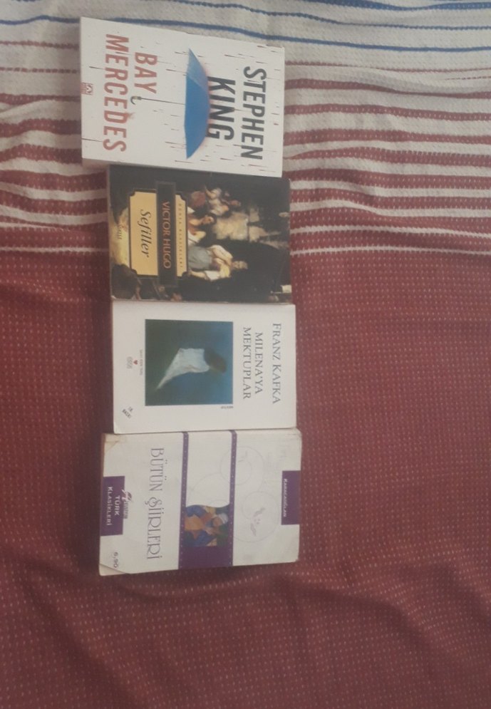 Stephen King, ve Franz Kafka'nın eserlerinin bulunduğu kitap koleksiyonu. 'Sefiller' ve 'karacaoğlan Bütün Şiirleri' gibi kitaplar içerir. hepsinin 3 kitabın fiyatı 'bay mersedes' satıld