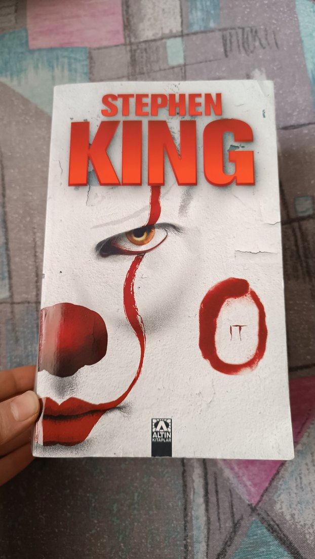 Stephen King'in "O" romanı, kırmızı ve beyaz renklerle tasarlanmış korkutucu palyaço yüzü kapağıyla Altın Kitaplar tarafından yayımlandı. orijinal kitap ilanda resim ekli keyifli okumalar