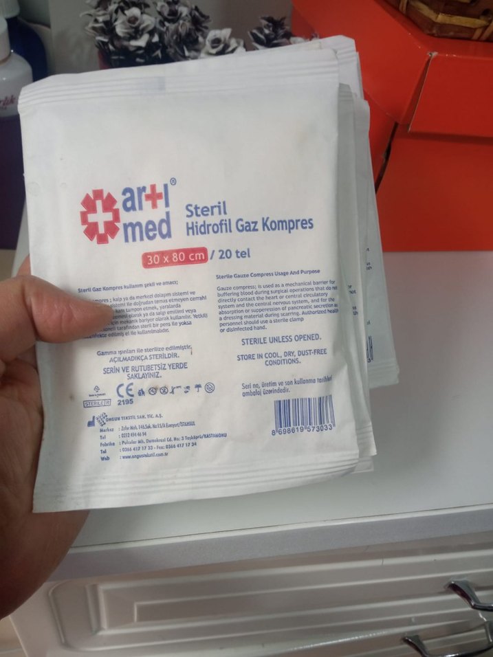 30x80 cm ölçüsünde, 10 adet steril hidrofil gaz kompres. Nefes alabilen ve emici yapıda, medikal kullanıma uygun. gazlibez