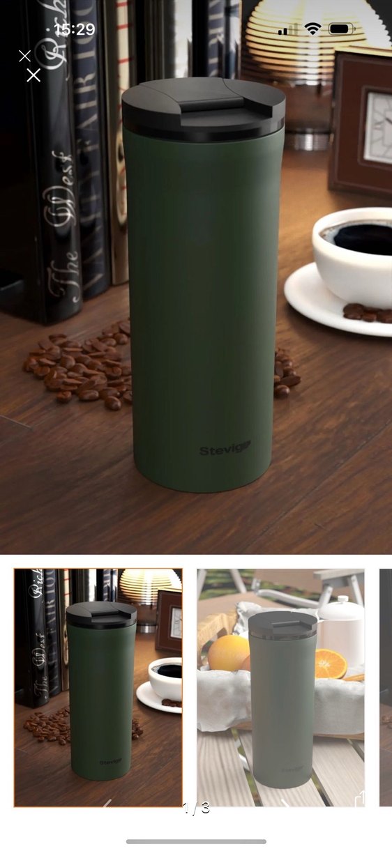 termos koyu haki renkte, içecekleri uzun süre sıcak veya soğuk tutar. Güvenli kapakla dökülmeyi önler. Sadece resimdeki çizik mevcut