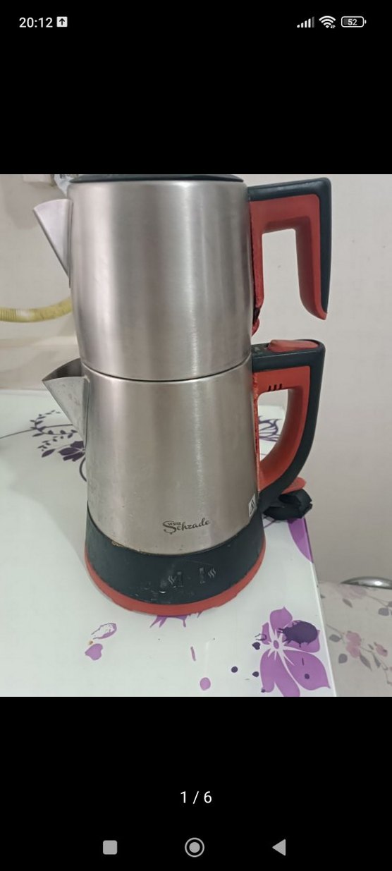 Vestel sehzade çay makinesi, kırmızı ve gri sapları ile paslanmaz çelik gövdeye sahiptir. Ayrı demleme ve kaynatma bölümleri bulunur.