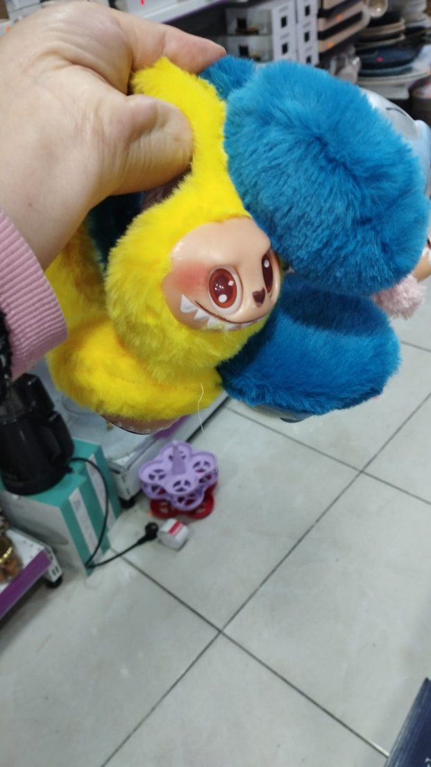Yumuşak ve tüylü dokusuyla renkli, sarı mavi beyaz kahverengi pembe renklerle stich ve labubu peluş kulaklık