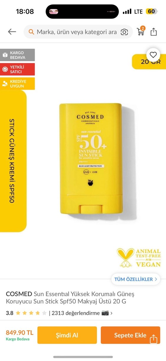 Stick güneş kremi