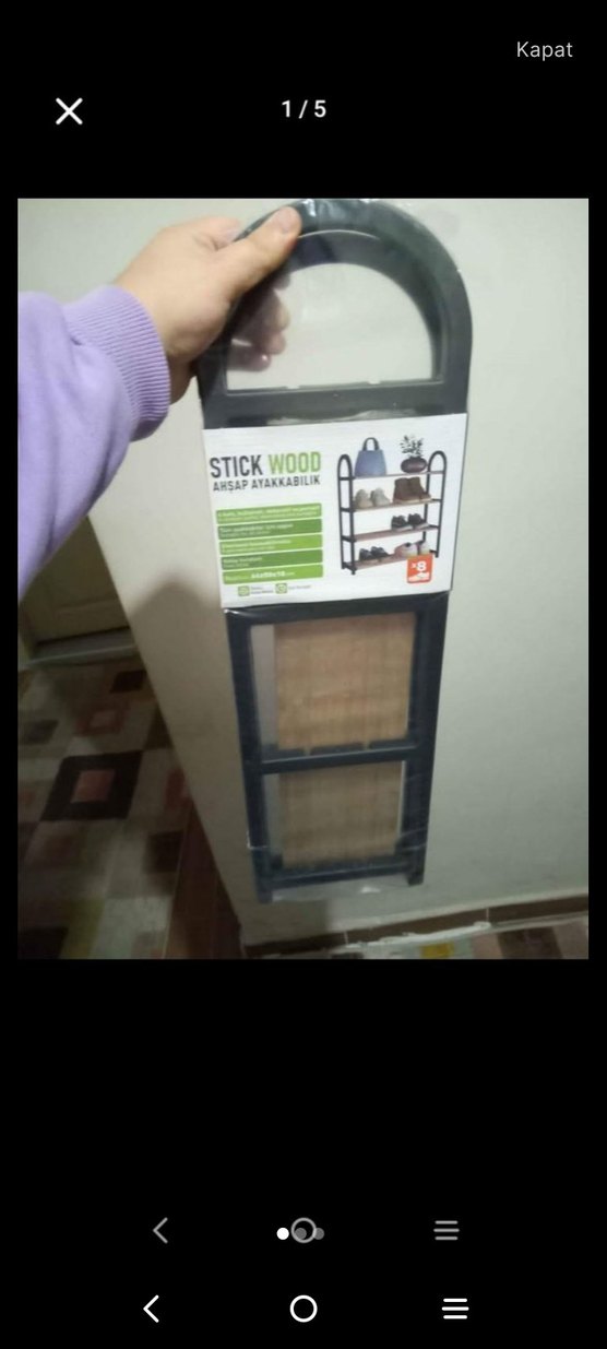 Koyu kahverengi ahşap ayakkabılık, Stick Wood markalı, çok katlı raflarla ayakkabı düzenlemesi sağlar. Kompakt ve kullanışlı tasarım.