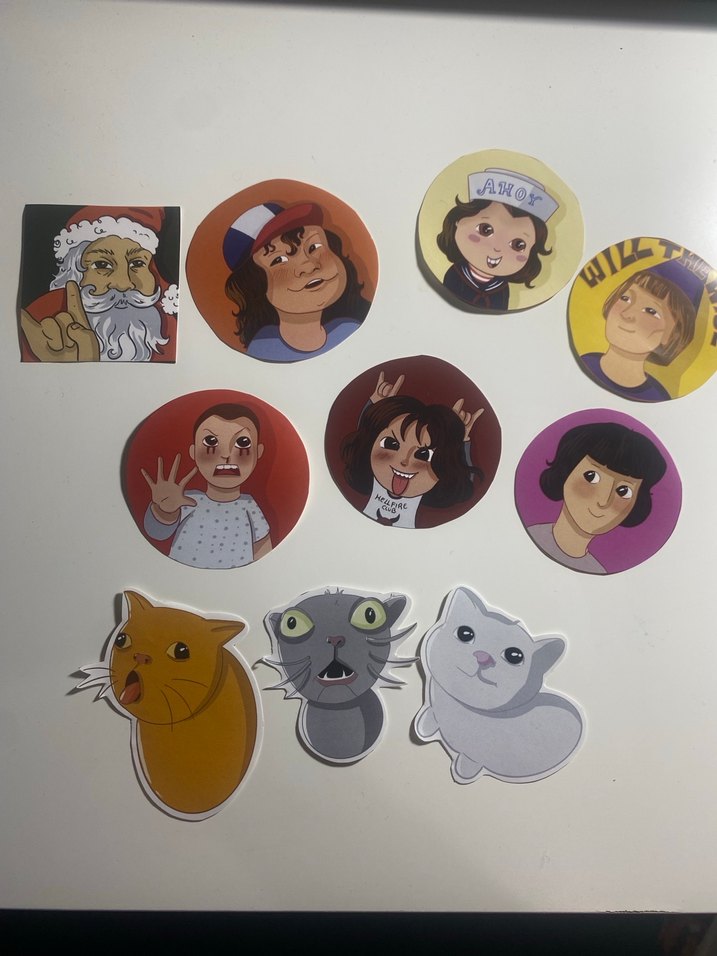 Stranger things karakterleri ve kedilerden oluşan sticker seti 1 adet 20 tl