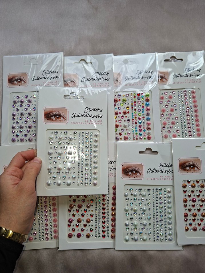 Sticko markalı, çeşitli canlı ve açık tonlarda kendinden yapışkanlı tırnak süslemeleri. Tırnakları kolayca süslemek için uygundur.
