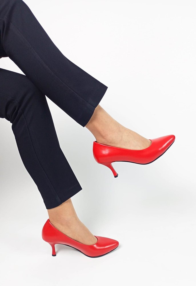 Hakiki Deri Kırmızı Renk Alçak Topuk Kadın stiletto Hakiki Deri Kırmızı Renk Alçak Topuk Kadın stiletto Materyal:%100 Hakiki Deri Topuk :İnce Topuk Taban:Neolit Topuk Yüksekliği:6 Cm Kalıp:Standart Tam Kalıp