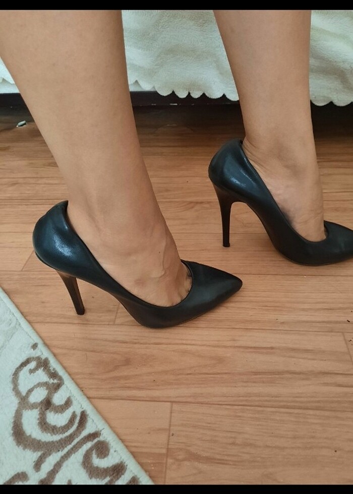 Her dolapta bulunması gereken bir ayakkabı .topuk boyu 12 cm..içinde çok ufak dökülme var iyice bakilmadi sürece belli bile değil.giyildiginde belli bile değil resimledim..