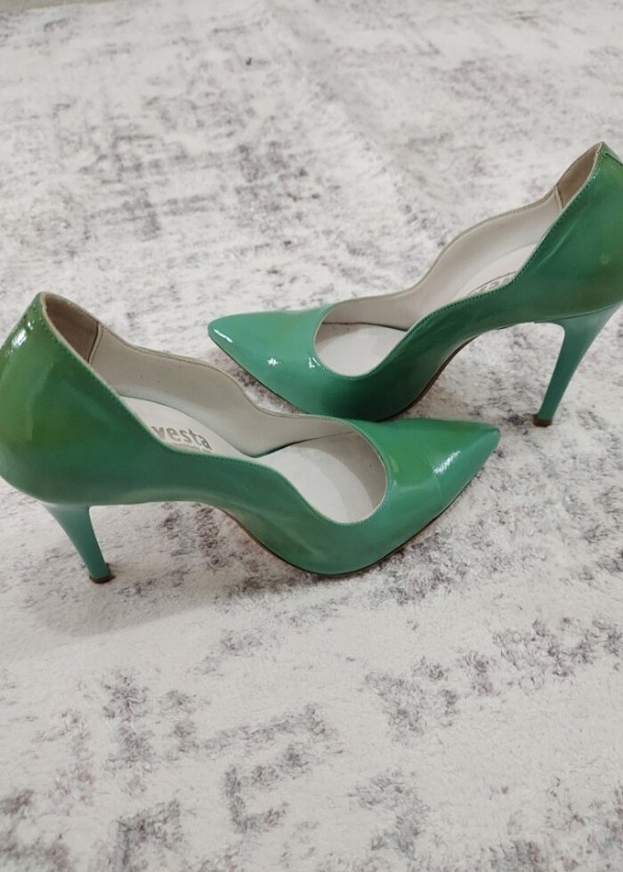 Özel günde kullandım. Her hangi bir kusur yok. Yeşil geçişli bir renk. İçi gerçek deri.