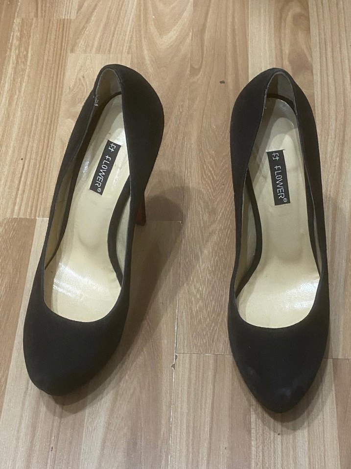 Siyah platform topuklu stiletto, kauçuk tabanlıdır. Klasik ve gotik tarzda, ofis kullanımı için uygun ve zahmetsiz şıklık sunar. İade kabul etmiyorum