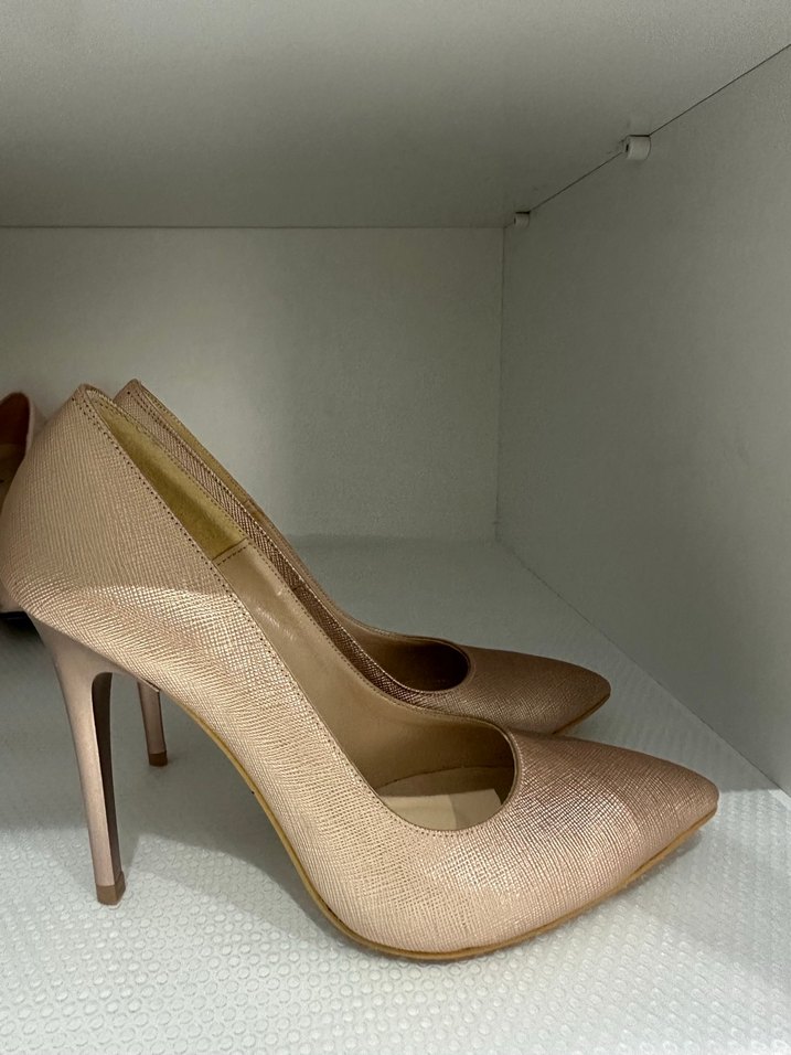 1-2 kez kullanıldı temiz 10 cm topuk boyu bronz renk topuklu ayakkabı
