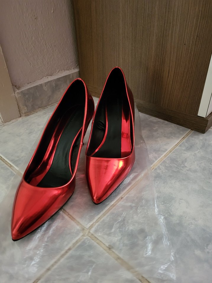 Parlak kırmızı, stiletto topuklu ayakkabılar, minimalist ve çağdaş tasarıma sahip, romantik akşamlar için uygun. ❤️ kucuk gelmese kesinlikle kullanirdim.bir kez inatla giydim ama maalesef benim icin uygun degil.