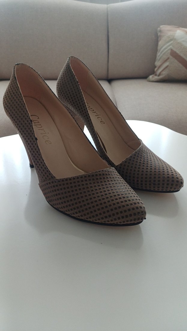 puantiyeli stiletto topuklu ayakkabılar 36 numara ucunda bi kac noktasinda kalkma olmus ama belli olmuyo giymeye engel bi durumu yok temiz ayakkabilar