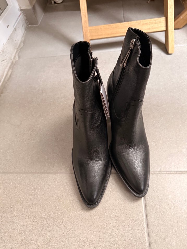 Kahverengi deri stiletto topuklu kadın bot, yan fermuarlı ve desenli. Romantik akşamlar ve sokak stiline uygun. Fiyat: TL 4799,99.