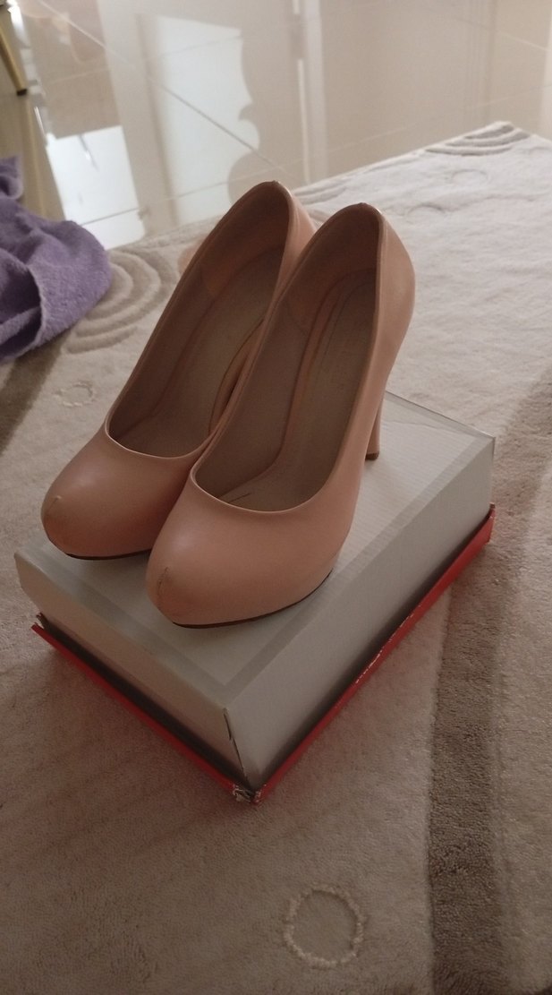 Bej renkte, kauçuk malzemeden yapılmış stiletto topuklu ayakkabılar. Pastel tonu ve desen içermeyen tasarımıyla romantik akşamlar için zarif ve çağdaş bir Paris tarzı sunar.