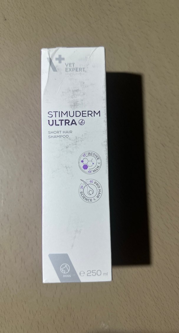 Stimuderm Ultra, kısa tüylü köpekler için cilt ve tüy sağlığını destekleyen aktif içeriklere sahip 250 ml şampuandır.