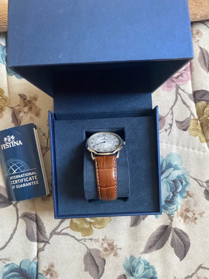 STINA erkek saati, gri kadran ve Roma rakamları ile kahverengi deri kayışı modern klasik tarzda sunar. Uluslararası garanti sertifikasıyla kutusunda gelir. ⌚