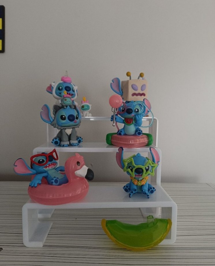 adet fiyatı 400 TL istediğiniz için ilan açtırabilirsiniz 3 üzeri alımda yardımcı olurum fiyat konusunda Renkli Stitch figürleri farklı poz ve aksesuarlarla set halinde sunuluyor. Canlı detayları ve farklı ifadeleriyle koleksiyon için uygundur. (simitli 450) Çeşitli oyuncak aksesuarları ve figür pozlarıyla renkli mavi aksiyon figürleri seti, beyaz stand üzerinde sergileniyor.