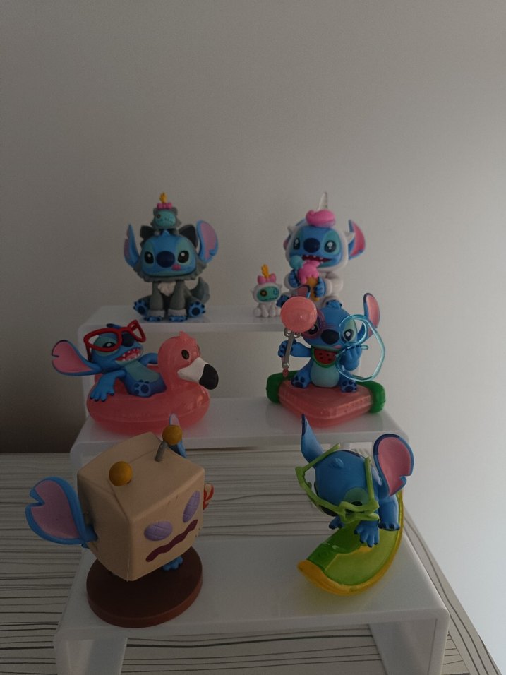 5 parça set fiyatıdır, ayrı almak isterseniz iletişime geçiniz. Çeşitli oyun pozisyonlarında, balon ve gözlük gibi aksesuarlarla renkli Stitch figürleri seti. iade yoktur.( simitli olan dahil değildir)