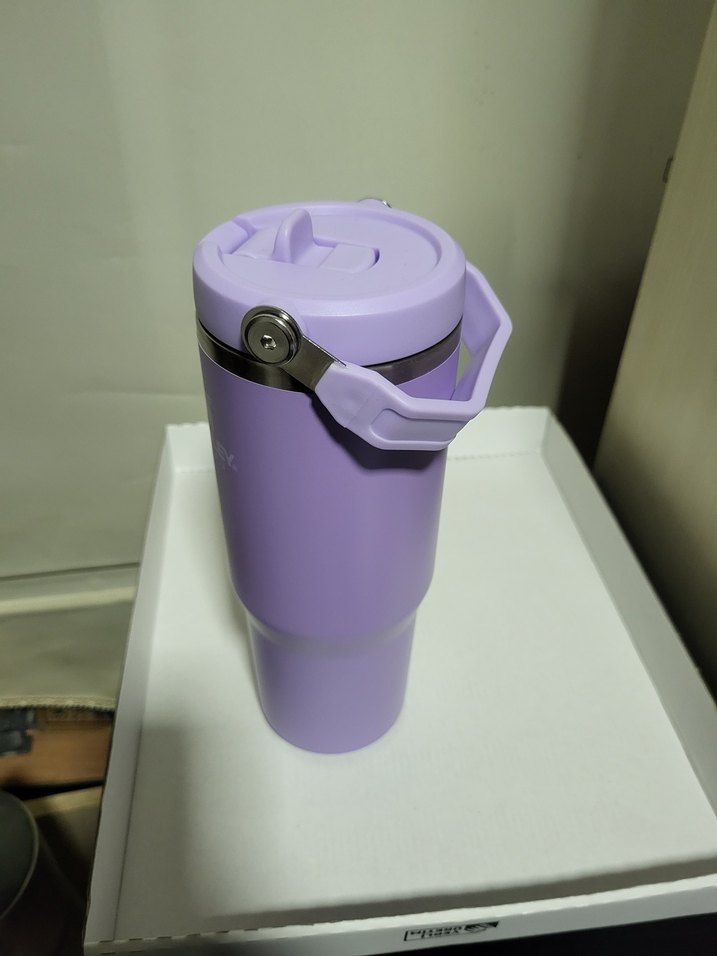 Pastel mor renkte, saplı ve kilitli kapağa sahip çocuk termos şişesi. İçecekleri sıcak veya soğuk tutmak için uygundur. Taşıması kolay ve dayanıklıdır.