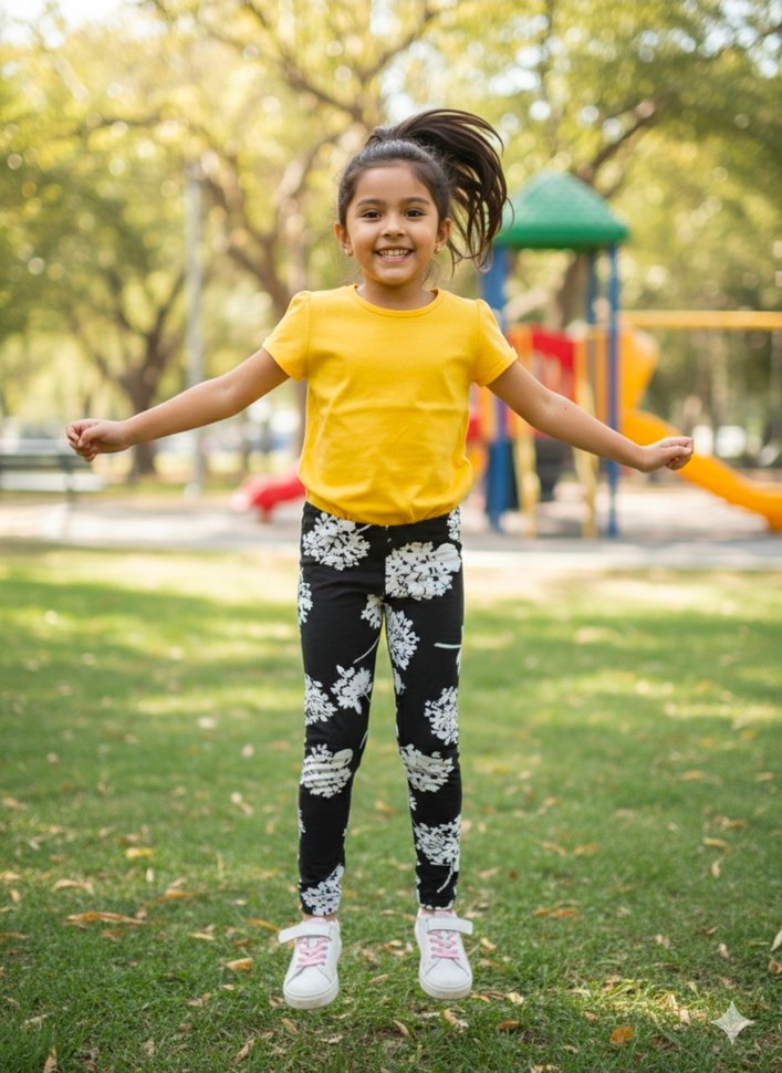 Stoklu Likralı Çiçek Desenli Çocuk Tayt 6-7 Yaş