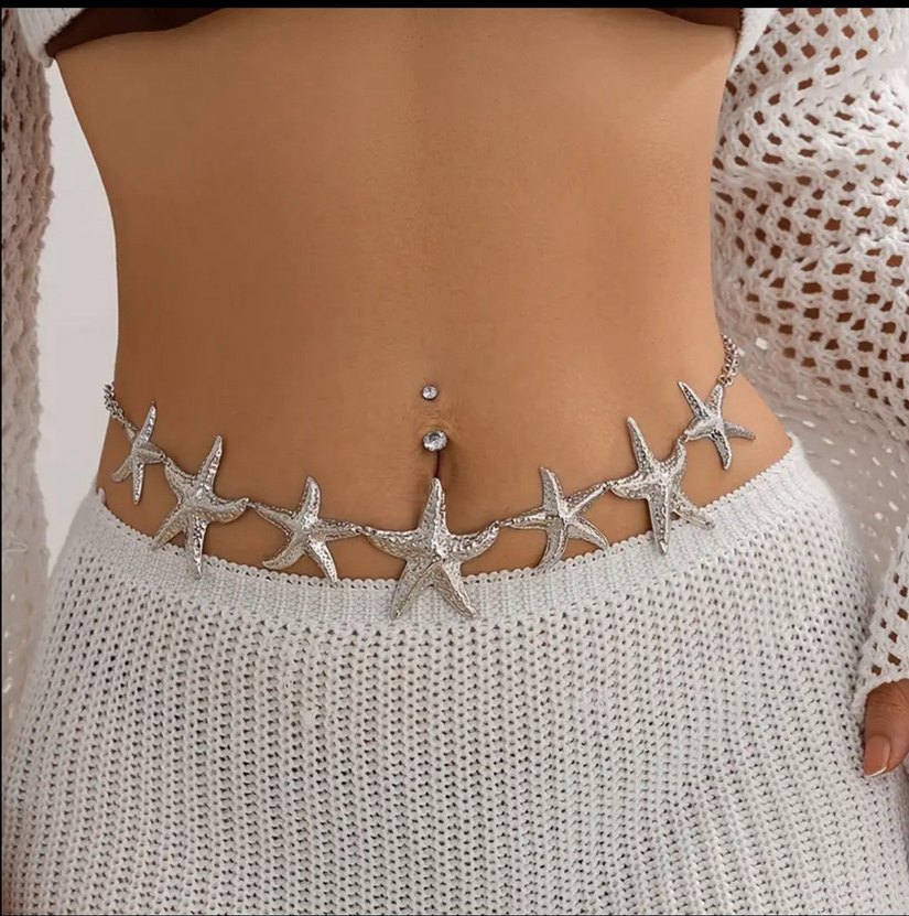 STOKTA VAR Gümüş rengi deniz yıldızlı bel zinciri, bel kemeri